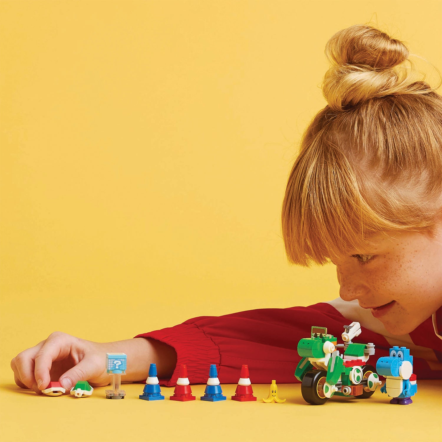 - Nintendo® gift idea for kids – Drive and drift on a brick-built model of the Yoshi Bike with this LEGO® Super Mario™: Mario Kart™ adventure toy playset