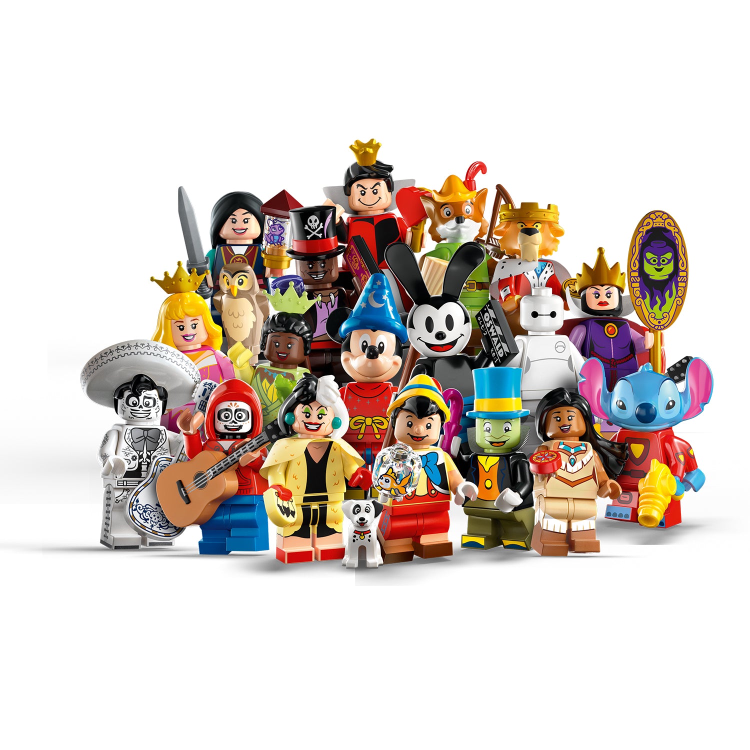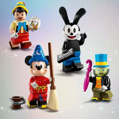 An amazing parade of film stars!Disney fans will be thrilled to revel in nostalgia and collect this fantastic array of iconic film characters: Sorcerer’s Apprentice Mickey, Pinocchio, Jiminy Cricket, The Queen, Stitch 626, Pocahontas, Cruella de Vil & Dalmatian puppy, Miguel & Dante, Ernesto de la Cruz, Oswald the Lucky Rabbit, Robin Hood, Prince John, Tiana, Dr Facilier, Queen of Hearts, Mulan, Aurora and Baymax. The perfect treat for LEGO fans!