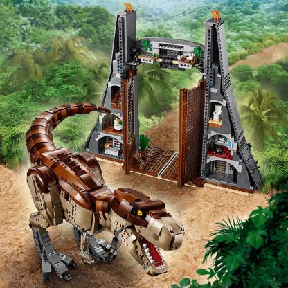 - The brick-built LEGO® version of the original Jurassic Parks iconic gate has an opening function, jungle leaves and flame elements.