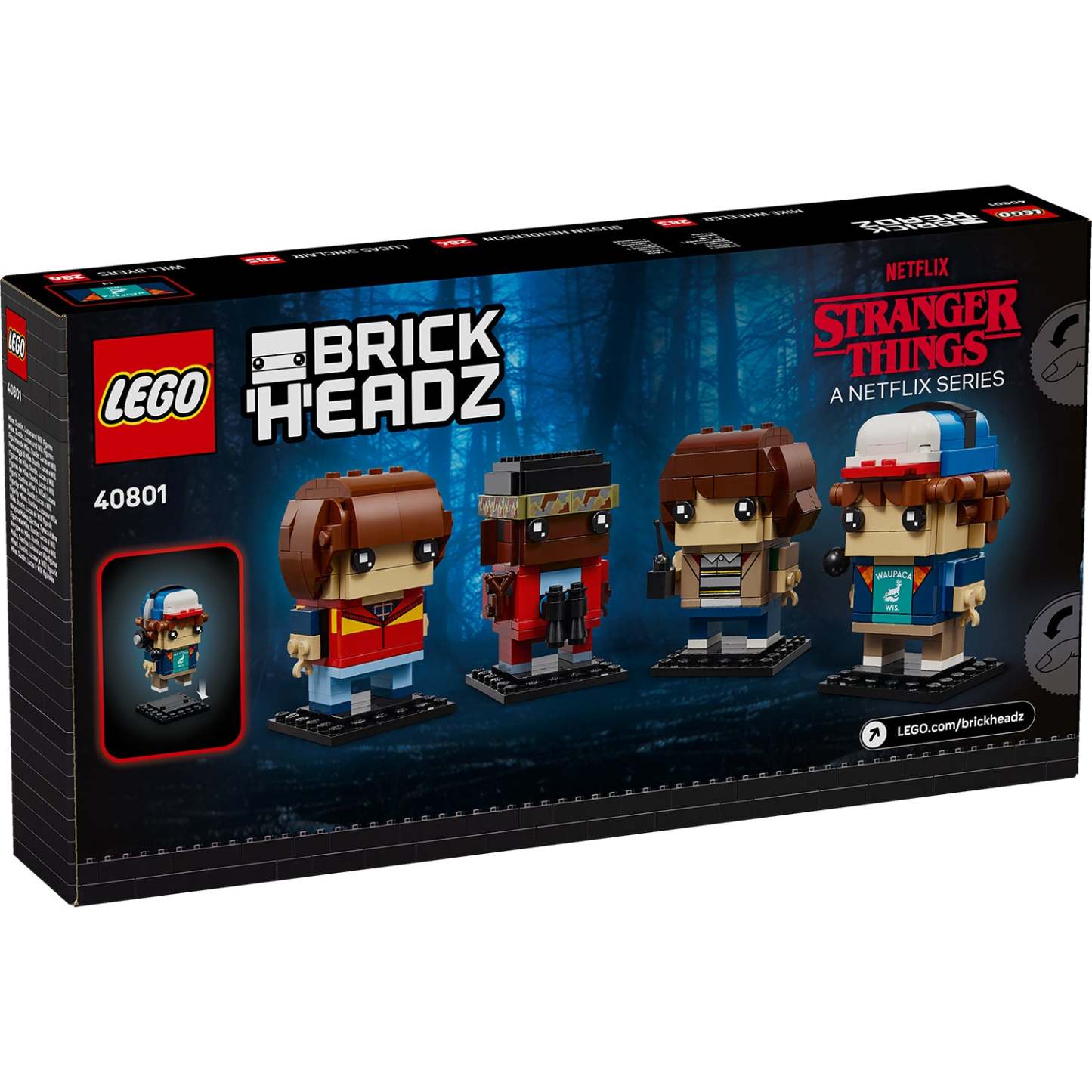 - LEGO® BrickHeadz™ ǀ Stranger Things – Fans can recreate scenes from Stranger Things when they build, play with and display these fun Mike, Dustin, Lucas and Will collectibles