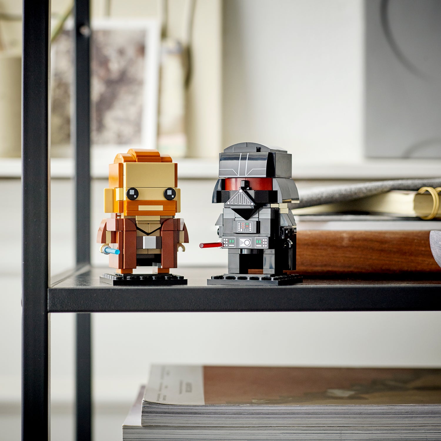 - Iconic Star Wars™ characters in LEGO® BrickHeadz™ style – Buildable LEGO BrickHeadz figures of Obi-Wan Kenobi and Darth Vader (40547) with lightsabers
