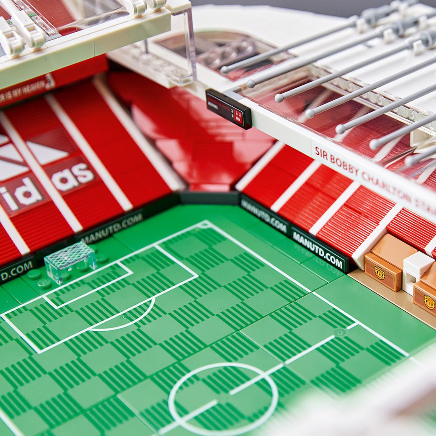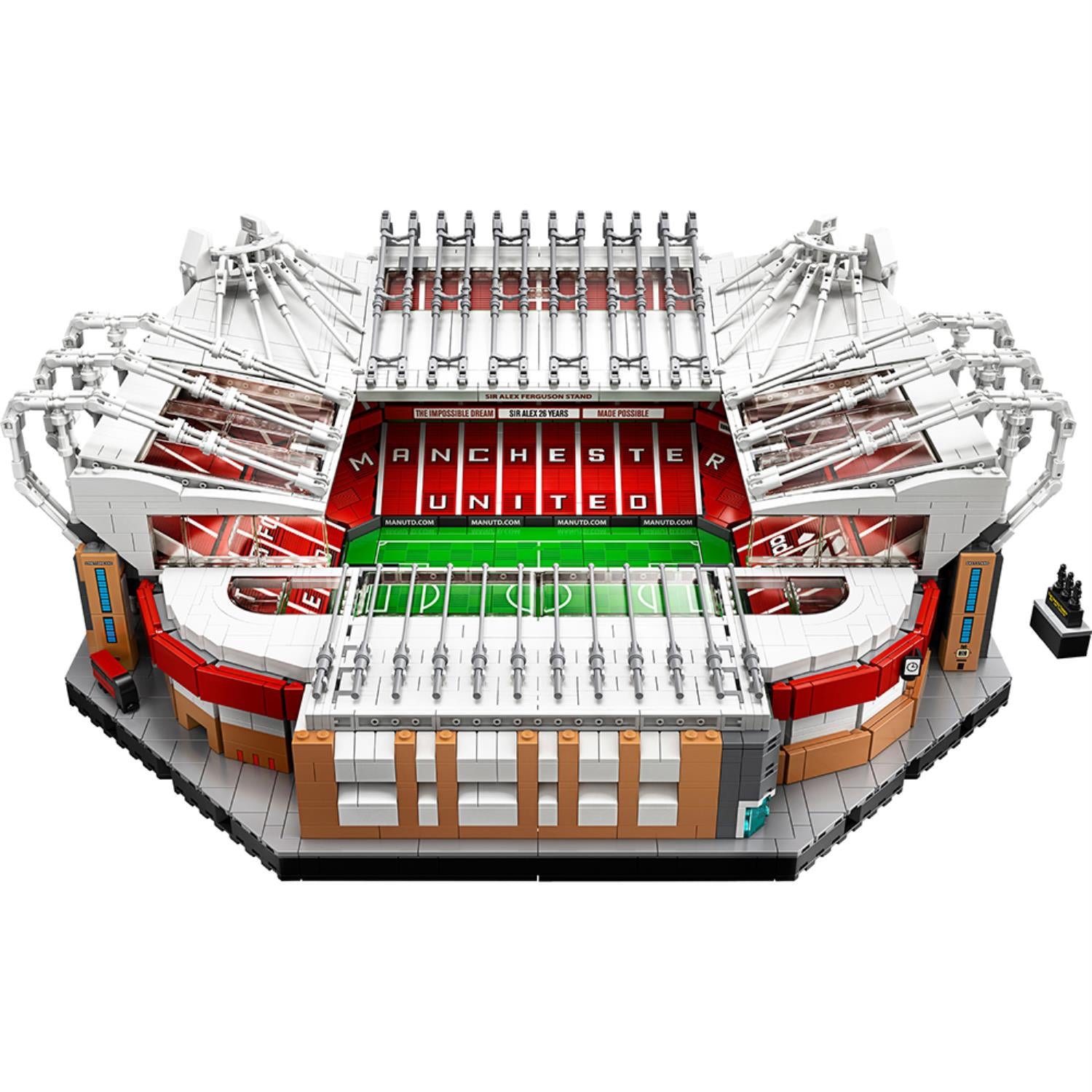- A building kit of a 1:600 replica model of Old Trafford. This LEGO® football stadium provides a fun and rewarding project and allows fans to relive their cherished memories of Manchester United with this detailed model.
