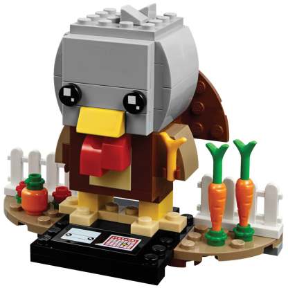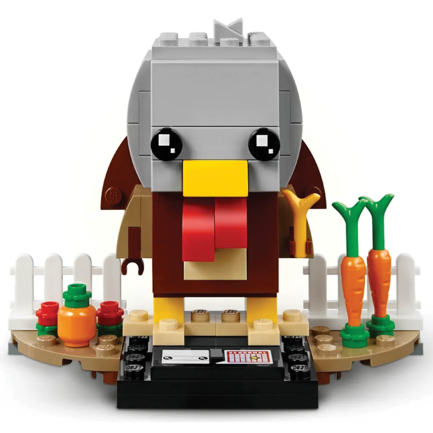 - Buildable LEGO® BrickHeadz™ Thanksgiving Turkey construction character features a yellow beak, brown wings and a detachable carrot.