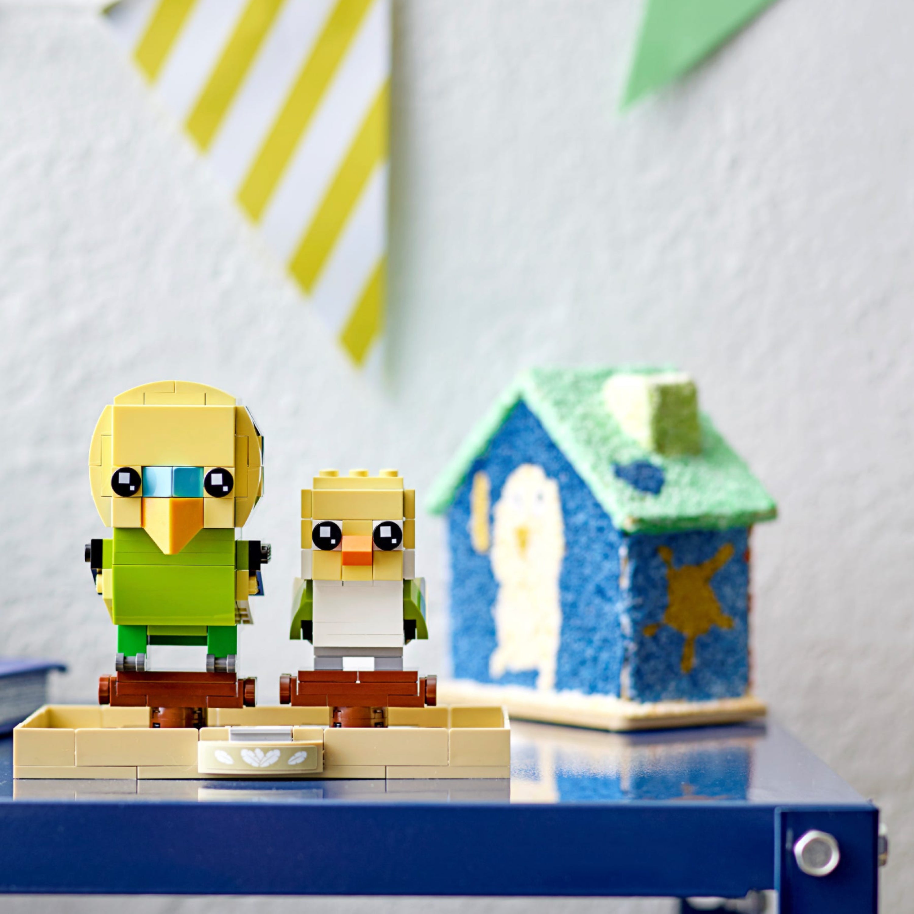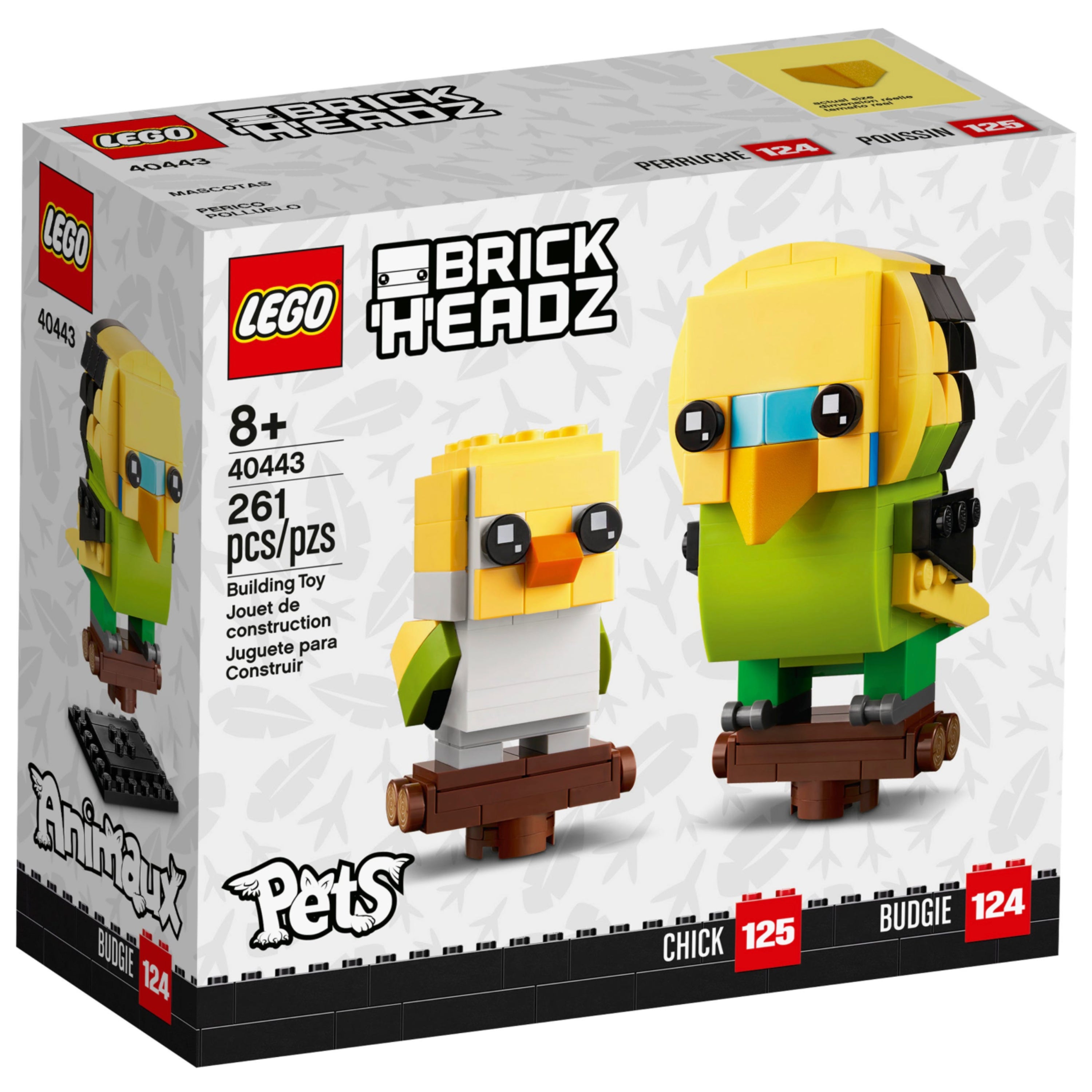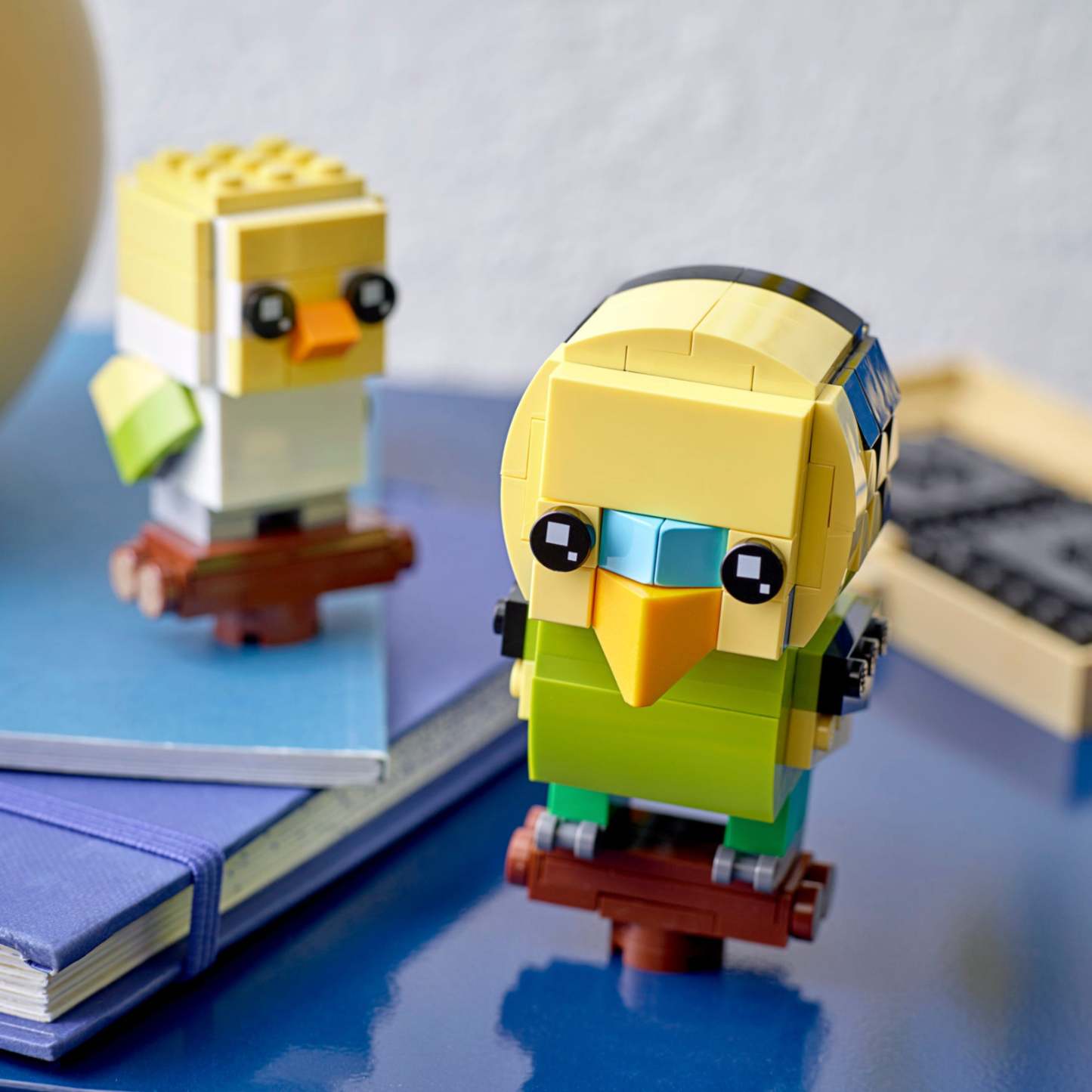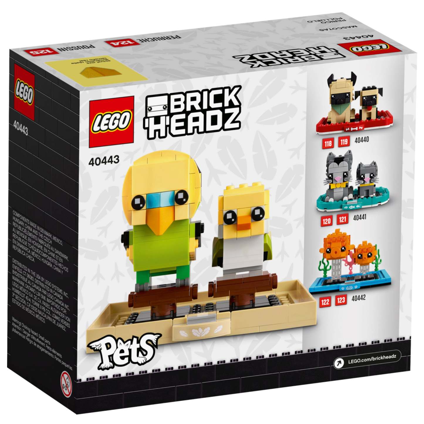 - Collectible construction set featuring cute LEGO® BrickHeadz™ models of a budgie and chick together on brick-built stands that fit into a cage bottom-style base.