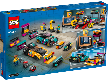 - Customizing cars is kids’ play – This multi-feature LEGO® City Custom Car Garage (60389) is packed with features that will shift imaginative play up a gear