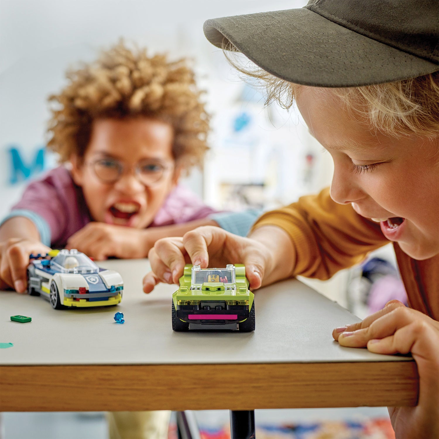 - Police car toy for tire-screeching action – Police pursuits await with the LEGO® City Police Car and Muscle Car Chase playset for ages 6 and up
