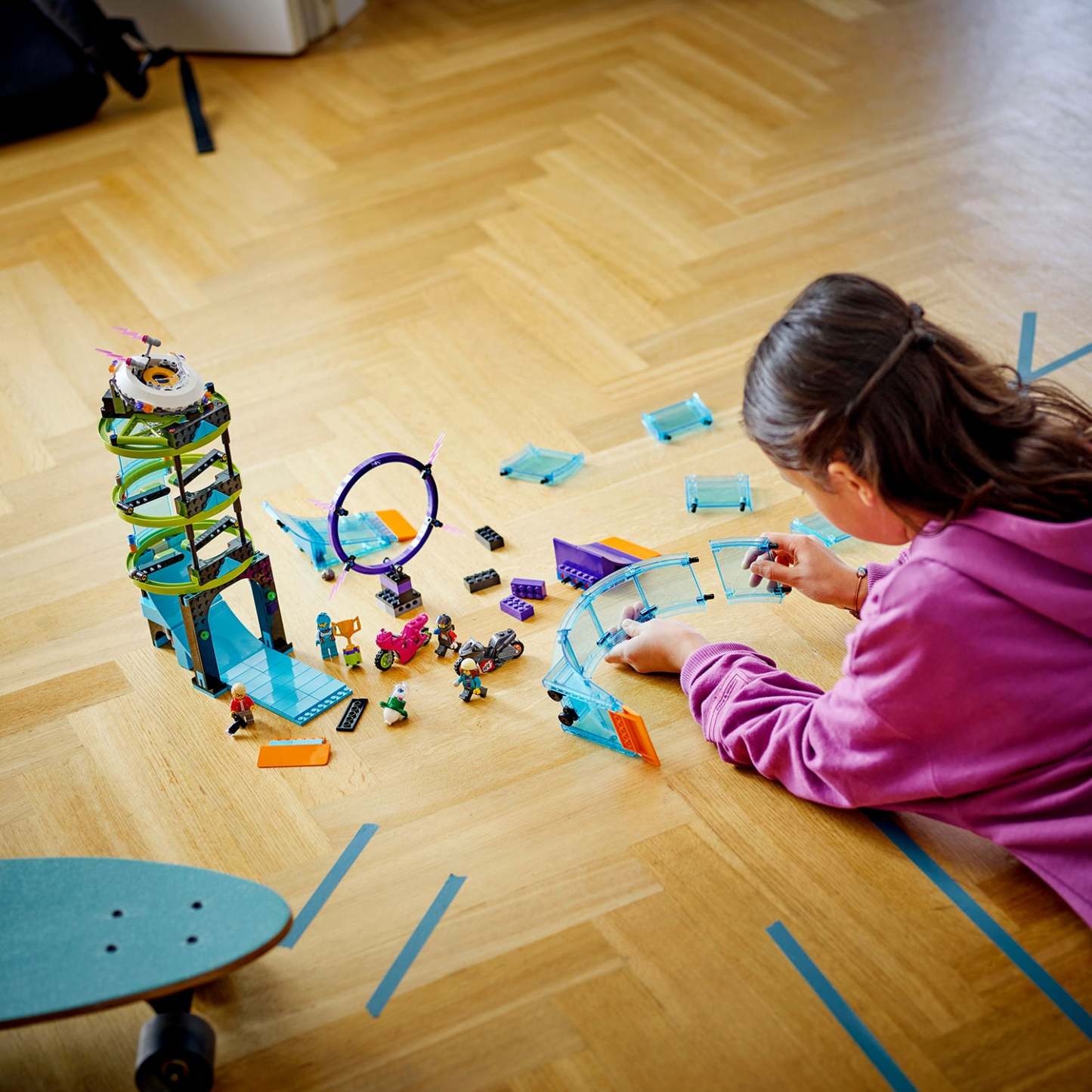 - Triple challenge toy stunt course for kids aged 7+ – Set the scene for fun displays and contests with the LEGO® City Ultimate Stunt Riders Challenge (60361) for both independent and group play