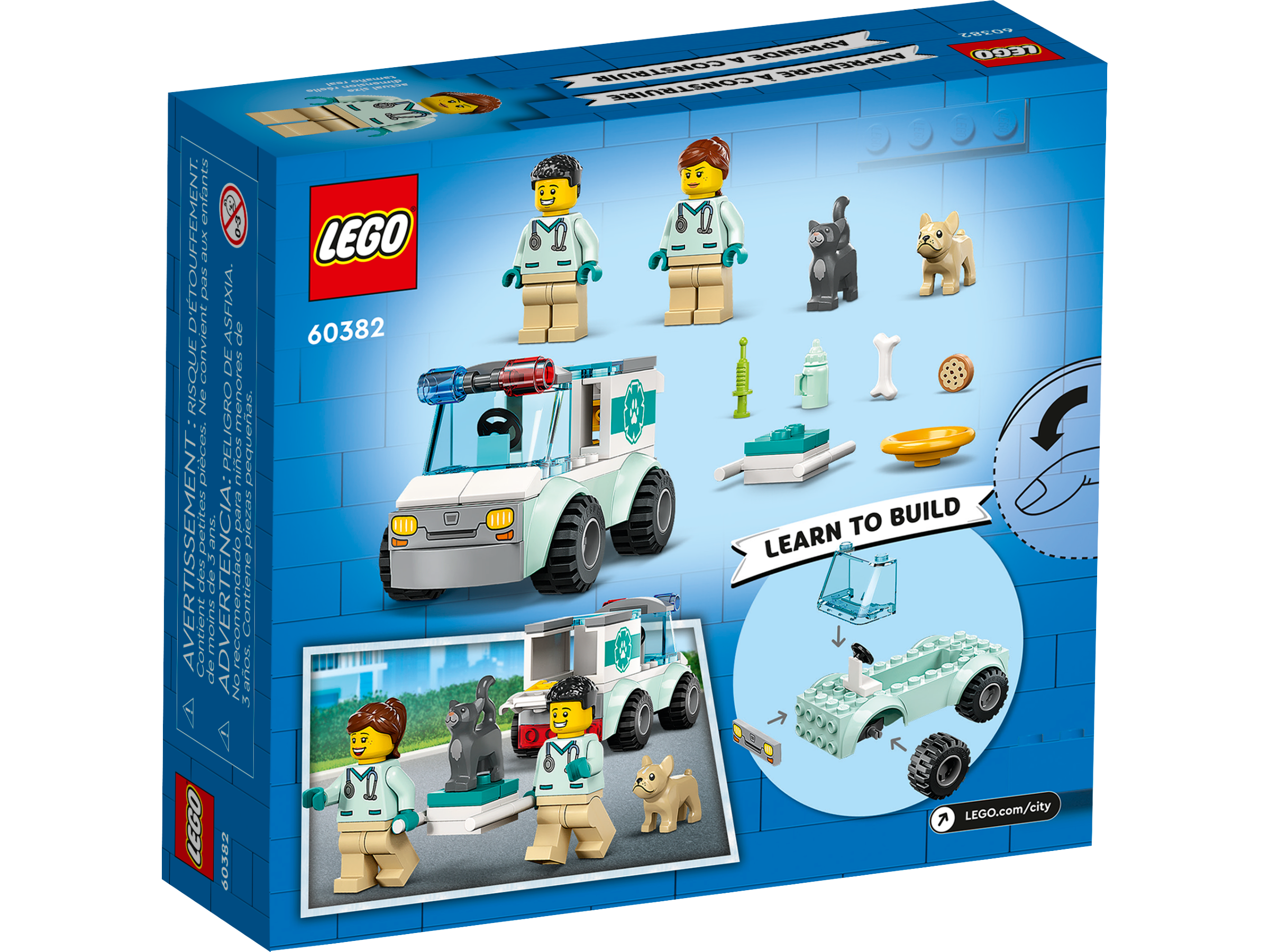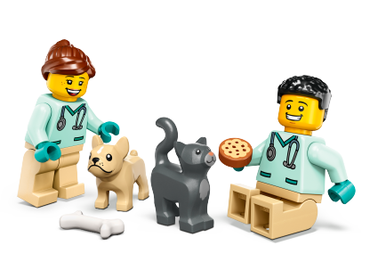 - What’s in the box? – Everything kids need to create a toy animal-rescue vehicle, plus 2 vet minifigures, dog and cat figures and fun accessories