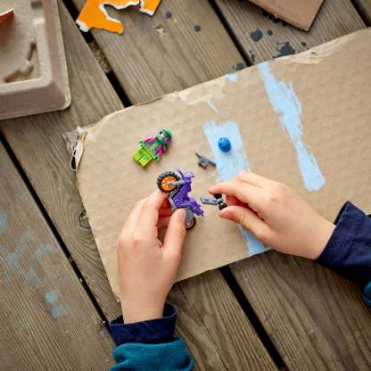 - Combine this stunt bike playset with others from the LEGO® City Stuntz series for more fun characters and stunt-show extravaganzas!