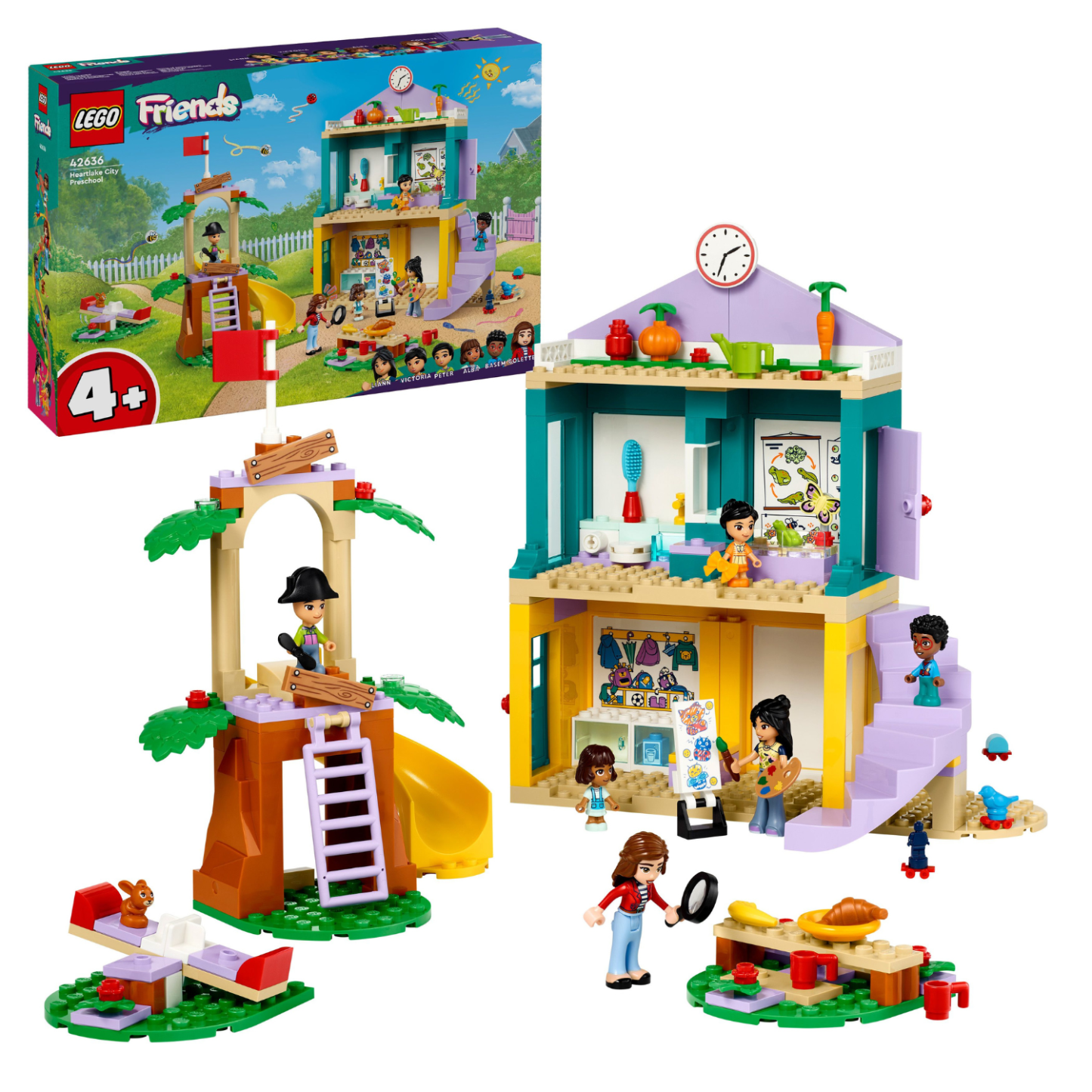 - Pretend-play classroom playset for girls and boys aged 4 and up – The Heartlake City Preschool for kids comes with a buildable preschool, a seesaw, slide, art area, classroom and a rooftop garden