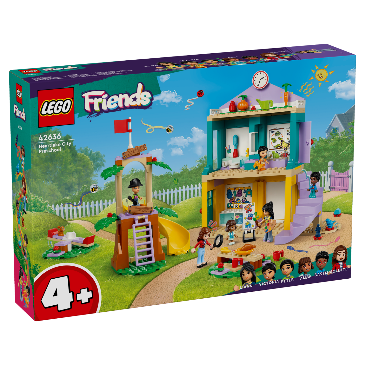 Discover a classroom playset filled with story inspiration for girls and boys aged 4 years old and up. The LEGO® Friends Heartlake City Preschool playset (42636) is packed with creative pretend-play accessories for kids to act out a day at kindergarten with the 2 mini-dolls, 4 micro-dolls and bunny figure.