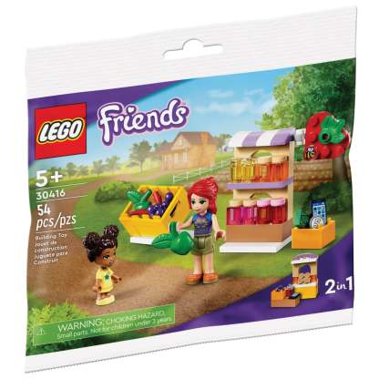 Kids who love shopping play can build and rebuild food booths with LEGO® Friends Market Stall (30416). They can configure them to sell organic food or bakery products.