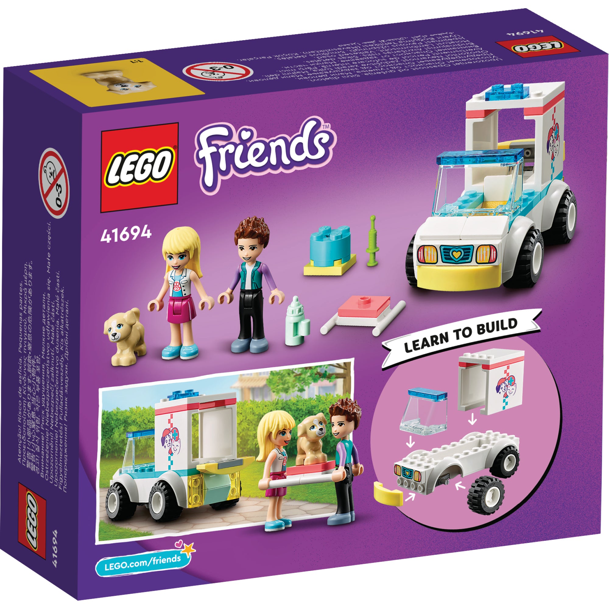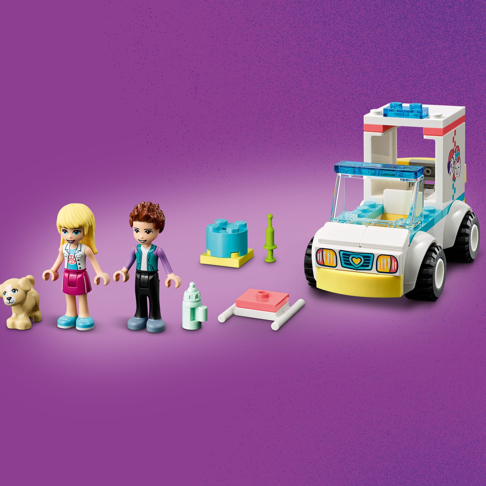 - Build, play and nurture – Great-value LEGO® Friends Pet Clinic Ambulance (41694) toy teaches kids aged 4 and up to build while they express their love of animals by caring for a poorly pup