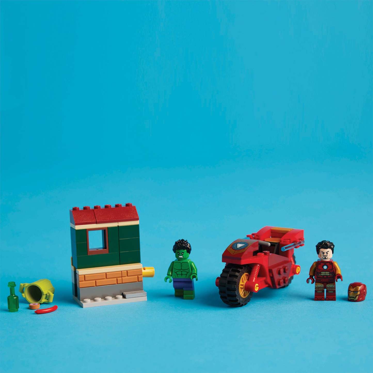- Super Hero set with minifigures – Includes Iron Man and Incredible Hulk minifigures, Iron Man’s buildable, push-along toy motorcycle, a buildable house and fun accessories