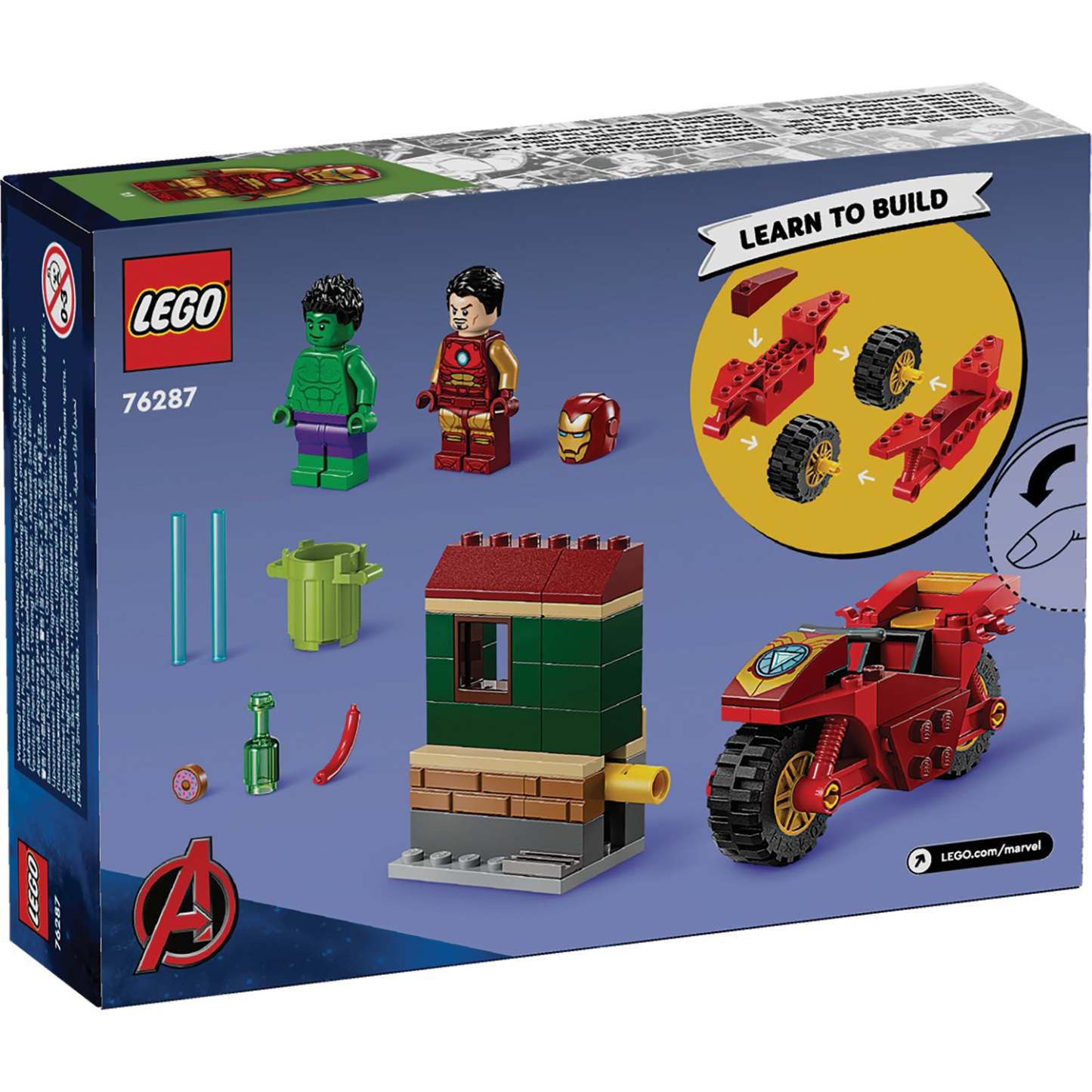 - Iron Man and Incredible Hulk buildable toy – This build-and-play LEGO® Marvel Iron Man with Bike and The Hulk playset for kids is especially designed for boys and girls aged 4 and up