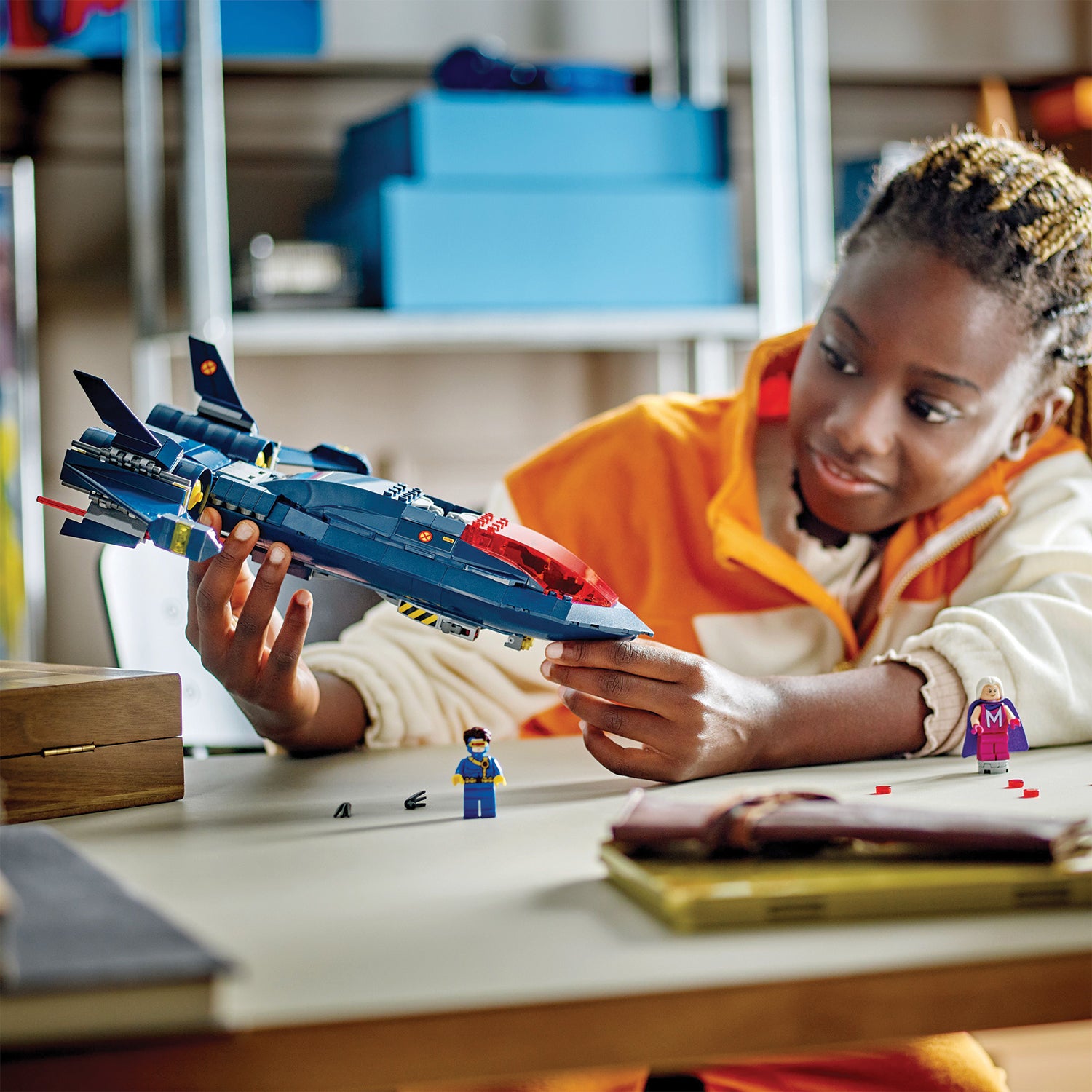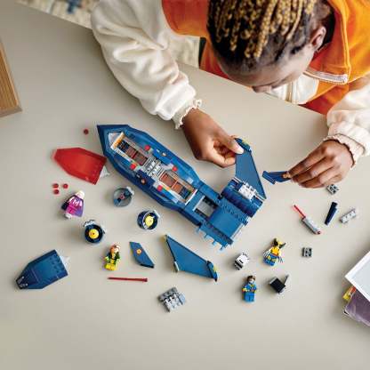 This spectacular plane model-building kit, based on the X-Jet in X-Men ’97, will inspire endless high-flying adventures with its Cyclops, Rogue, Magneto and Wolverine minifigures. The buildable action toy features twin cockpits with room for 4 minifigures, 2 stud shooters on both sides of the plane and 2 spring shooters beneath the wings. The buildable model plane also includes 2 removable containers where kids can store spare studs and Wolverine's long claws when they are not attached to the minifigure. For added digital fun, builders can zoom in, rotate models in 3D and track their progress using the fun, intuitive LEGO Builder app.