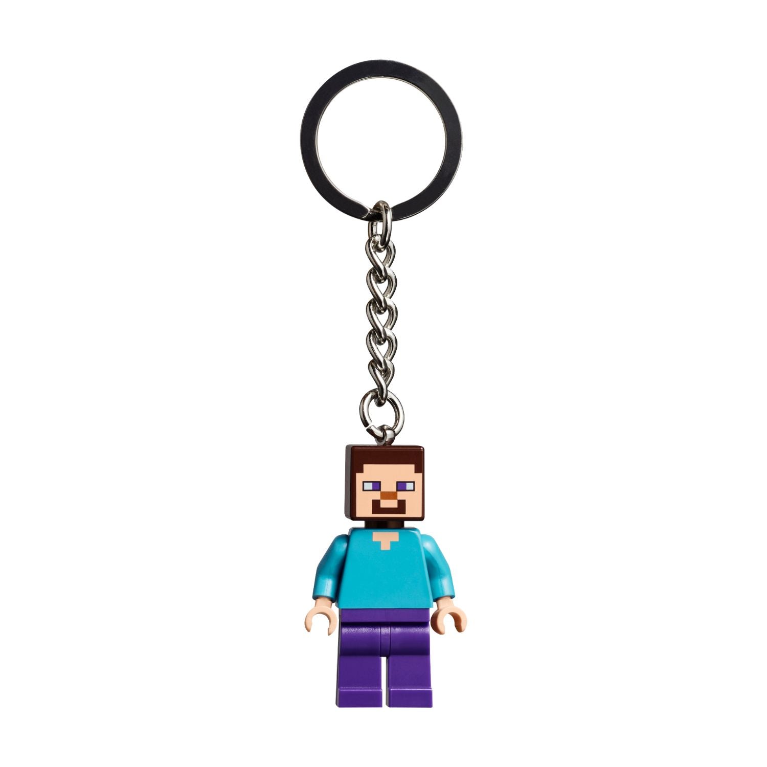 - LEGO® minifigure keyring – The non-removable Steve minifigure is fixed to a durable metal chain and key ring