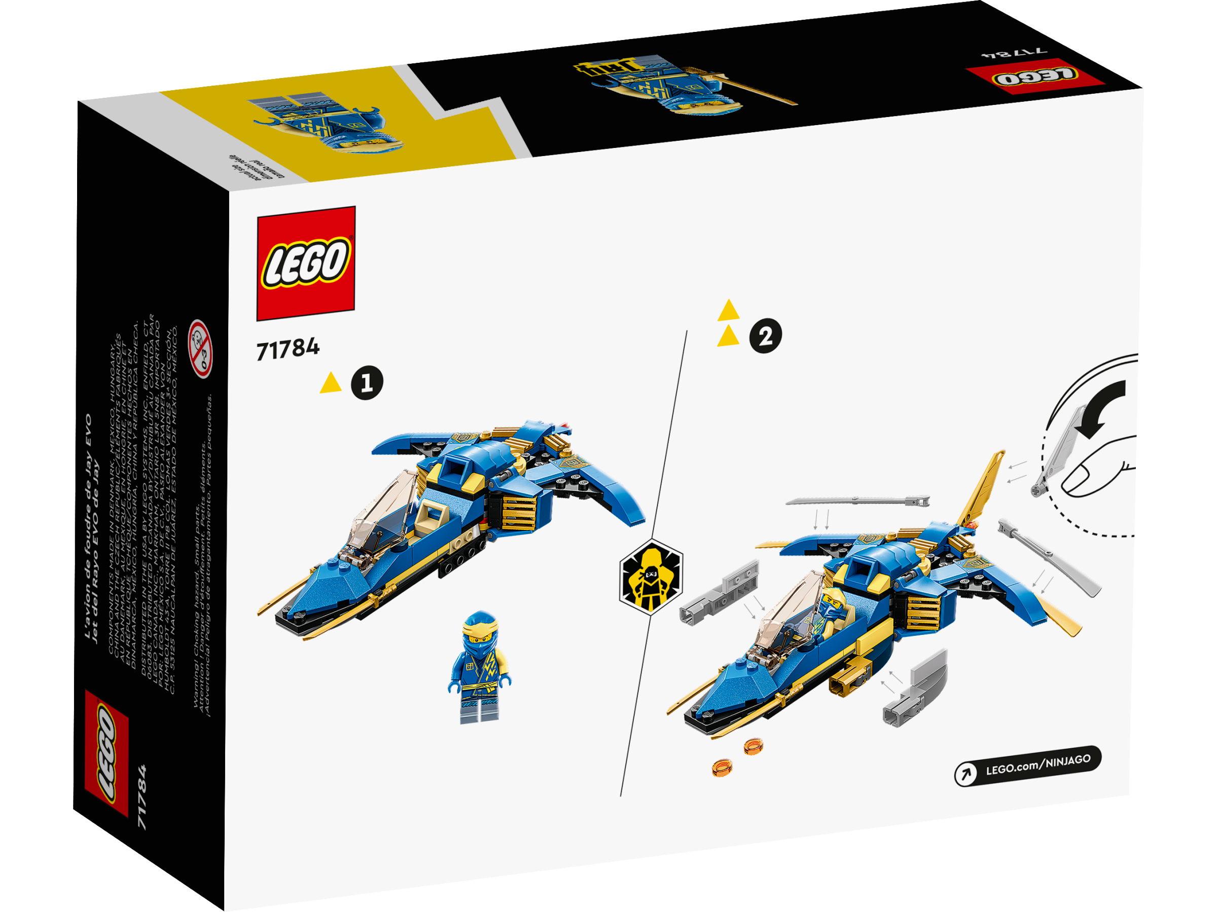 - Ninja jet toy – Kids enjoy playtime adventures high in the sky with this LEGO® NINJAGO® Jay’s Lightning Jet EVO (71784) set