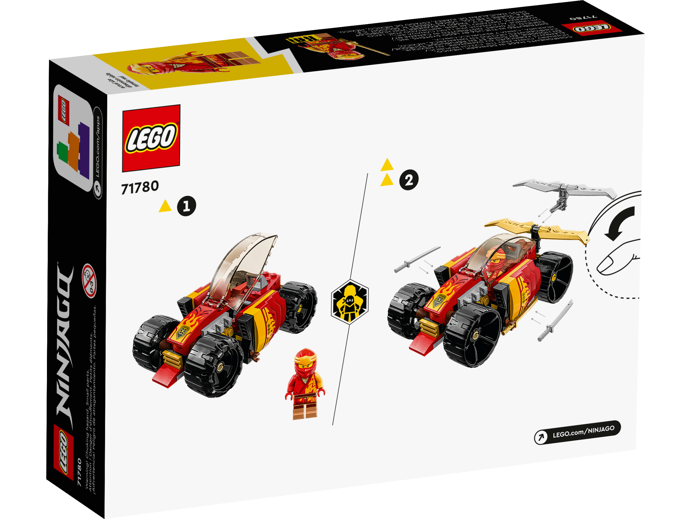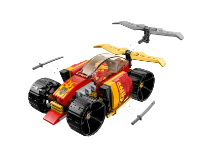 - LEGO® NINJAGO® car – Kids can stage exciting race action with Kai’s Ninja Race Car EVO (71780) playset