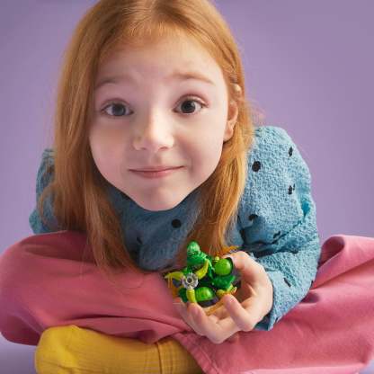 Kids can place Dragon Power Lloyd in the spinner adorned with 3 exclusive green dragon power elements, spin it and watch as he quickly rotates. His task is to avoid the spike obstacle elements, defeat the Imperium Droid and grasp the collectible golden dragon energy core element from a bowl. There’s also a green dragon power element and kids can collect 4 more in different colours in other NINJAGO® sets.