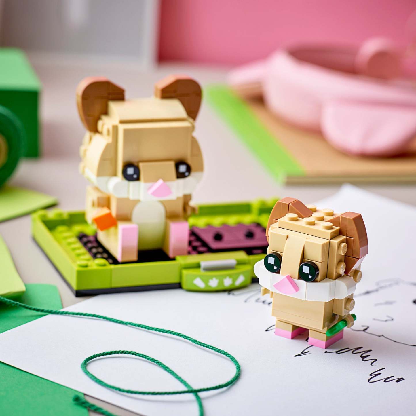 - Supercute collectible building set featuring LEGO® BrickHeadz™ models of a Hamster and baby Hamster sitting together on a display base.