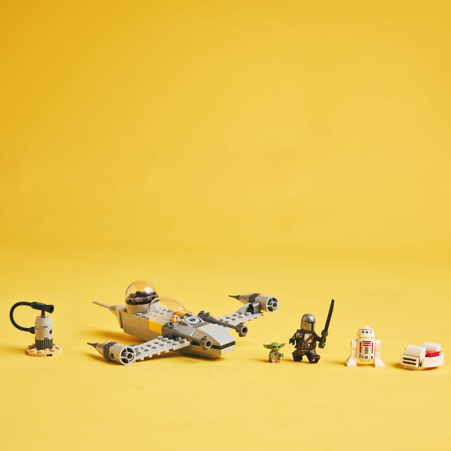 - 3 LEGO® Star Wars™ characters – The Mandalorian LEGO minifigure, a Grogu LEGO figure and an R5-D4 LEGO droid figure