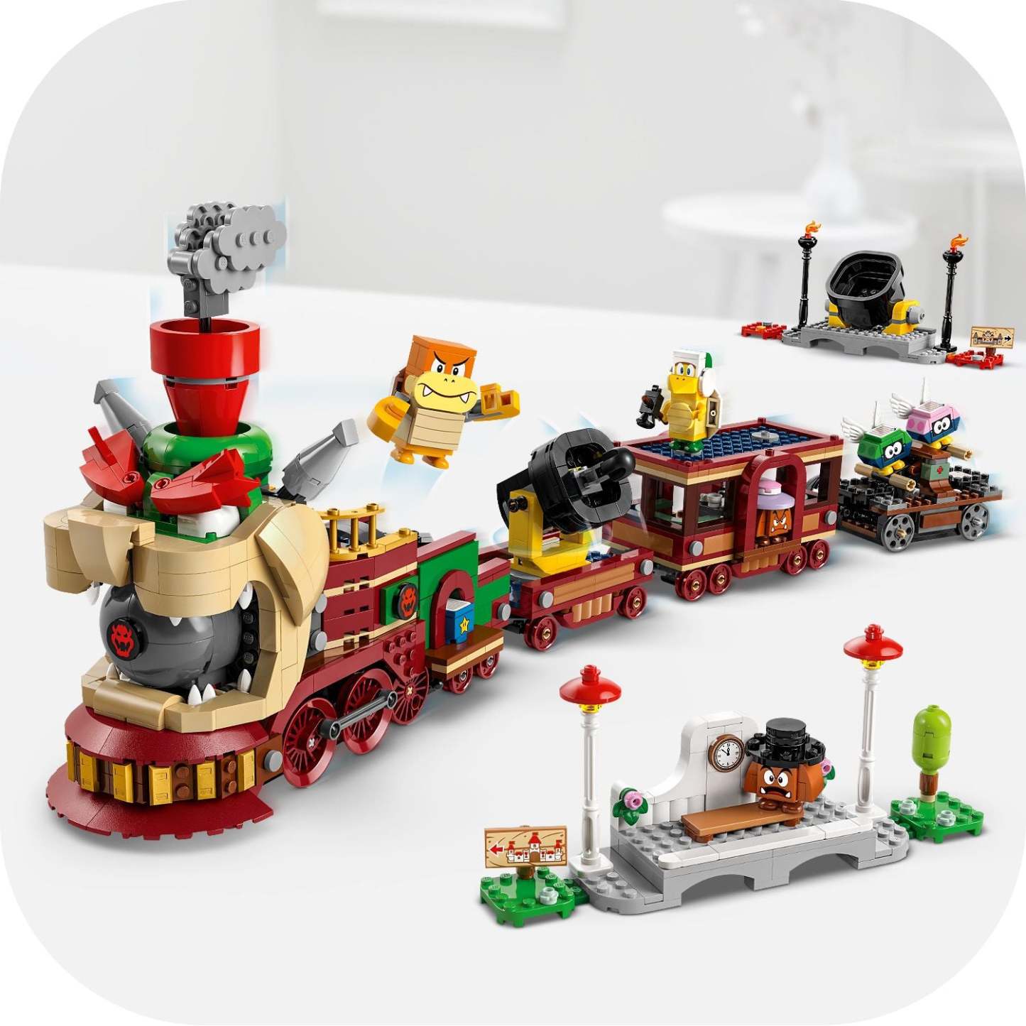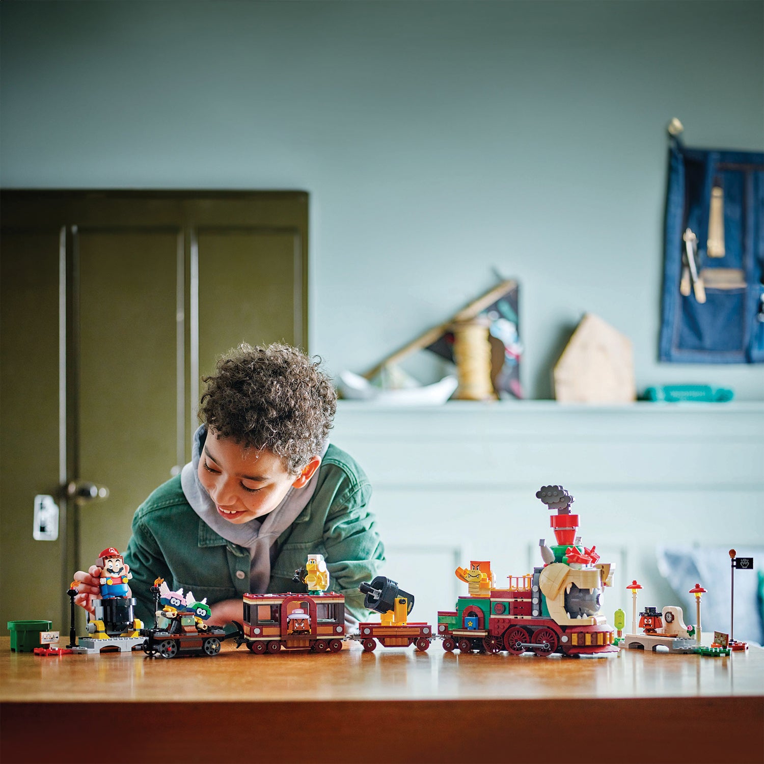 - The Bowser Express Train toy for kids – All aboard for role-play fun and more with this LEGO® Super Mario™ playset, featuring a detailed train, 2 train stations and a handcar
