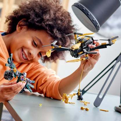 - Includes 2 minifigures to inspire imaginative play – Spider-Man and Vulture – and a buildable drone with 4 rotors and 2 stud shooters.