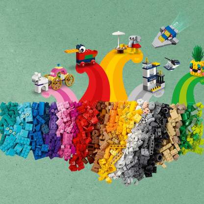 - Bursting with colorful LEGO® pieces – Kids, adults and grandparents can build whatever they imagine with this 1,100-piece LEGO toy building set